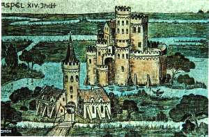 Burg Aspel im 14. Jh. Quelle: sanctirmgardis.blogspot.com |