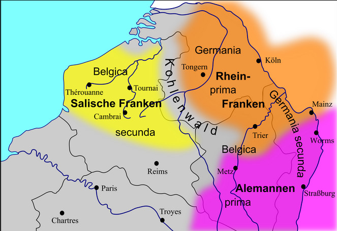 Mögliche Verbreitung der Franken um 400. Karte .pinterest.de |